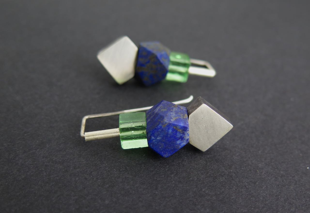 Lapis faceted, green glass, sterling silver, 3cm drop